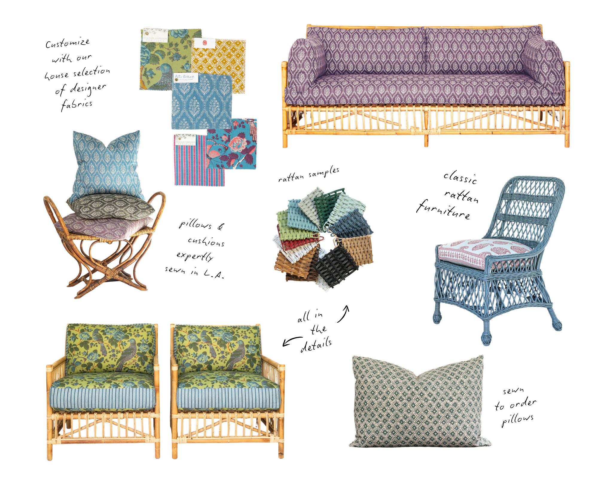 Tailored from the finest fabrics by top textile designers, we’ve set out to create the soft furnishing collection of our dreams. These timeless patterns can stand alone or be easily combined for a great layered look. But that's not all. We’re pairing custom cushions in designer fabrics with classic rattan furniture resulting in statement pieces that will effortlessly add laidback sophistication to your living spaces.