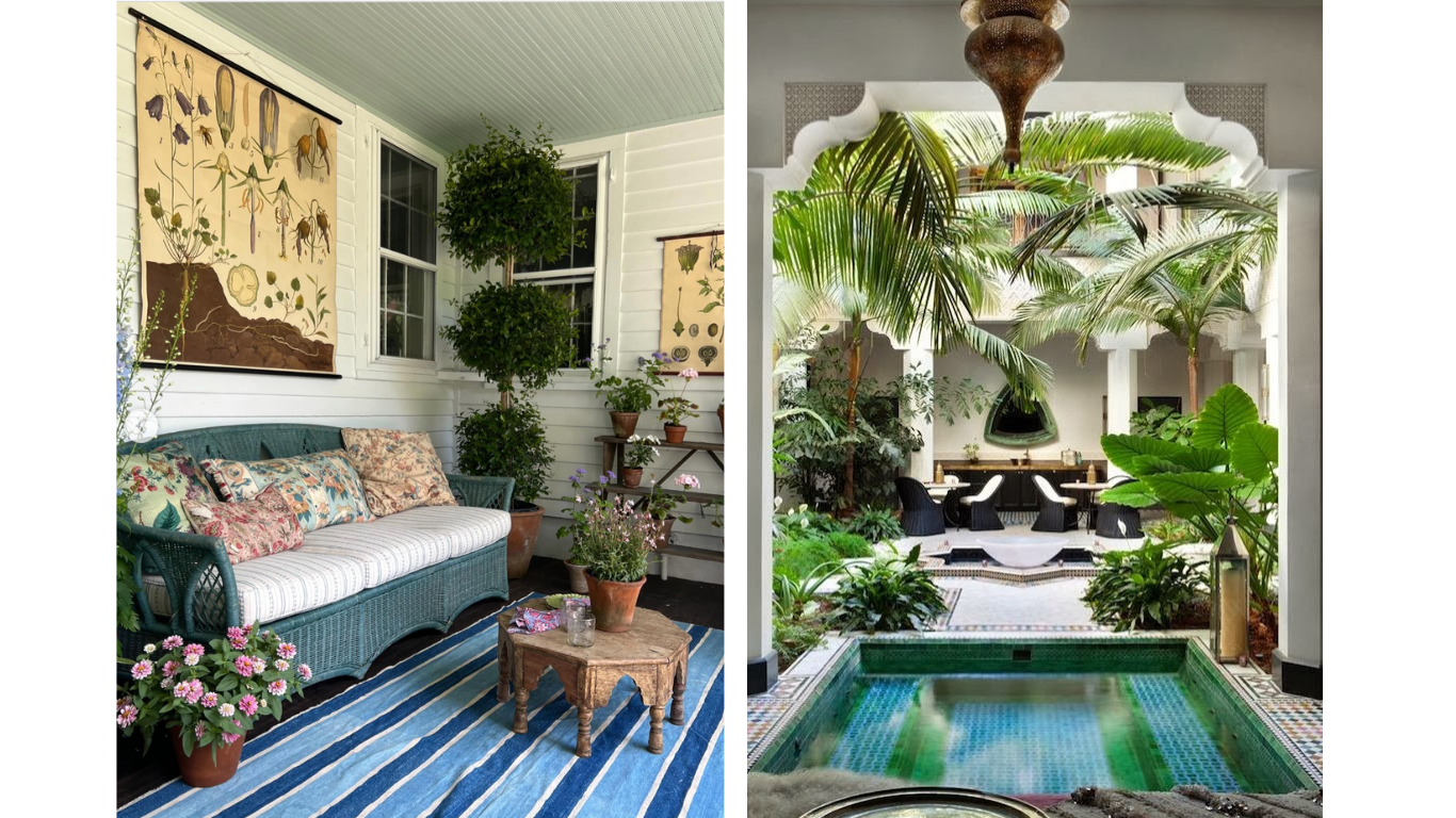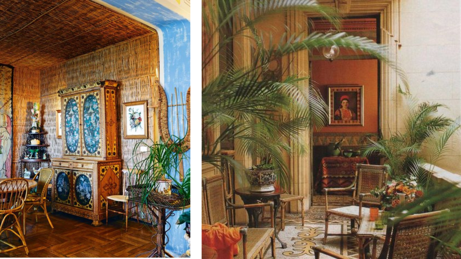My dream room is filled with lots of antique rattan, caning, and English bamboo furniture, loaded with pillows and cushions in gorgeous block print fabrics, a jungle of palm trees and bromeliads, a pair of Christopher Spitzmiller lamps, blue & white ginger jars, turquoise foo dogs, and antique Persian rugs. I'm clearly team maximalist.